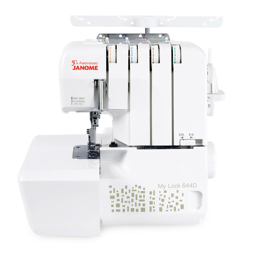 The MyLock 644D includes essential features for simple overlocking. The differential feed system of two feed dogs virtually eliminates puckered edges on woven fabrics and stretched edges on knits. Its unique rolled hem conversion feature eliminates the need to change the needle plate, foot, or tension setting for rolled hemming. Janome has restructured the lower looper guides for easy access. Colour-coded guides are easy to follow for 2, 3, or 4 thread overlocking. All of the features on this machine are specially designed to make this overlocker the easiest to use on the market today.