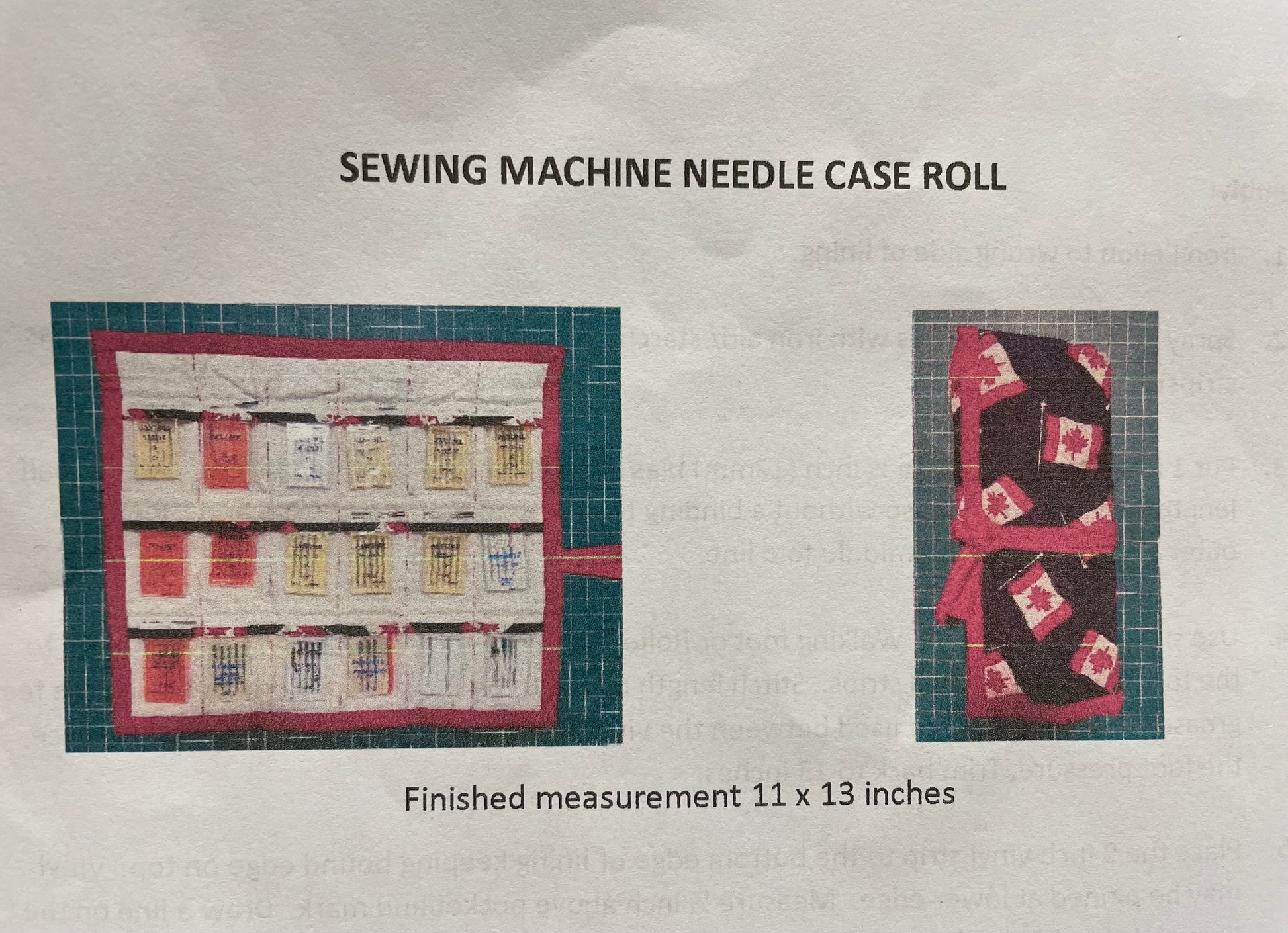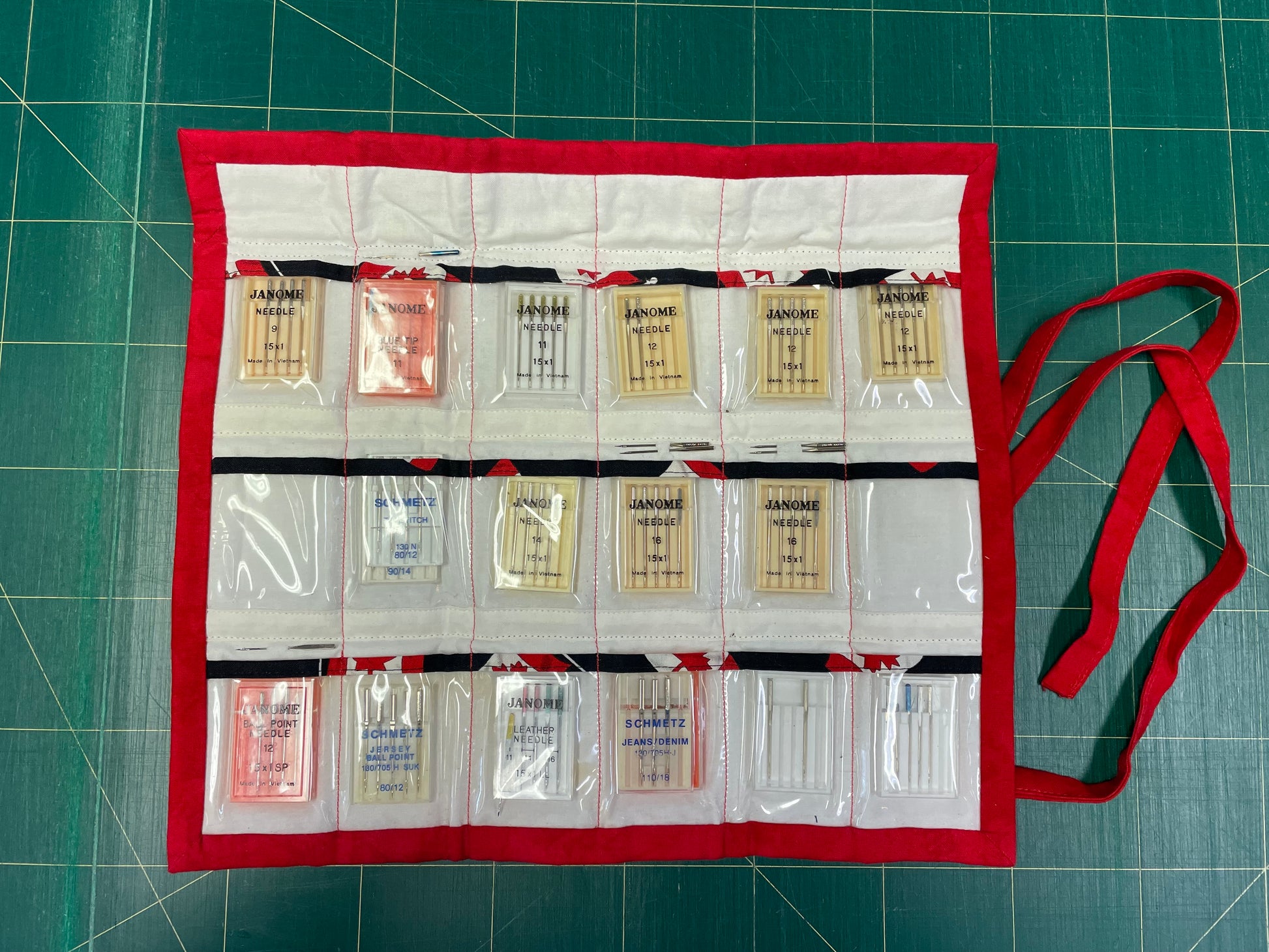 Kit contains pattern fabrics, pellon and vinyl. does not include machine needles.
