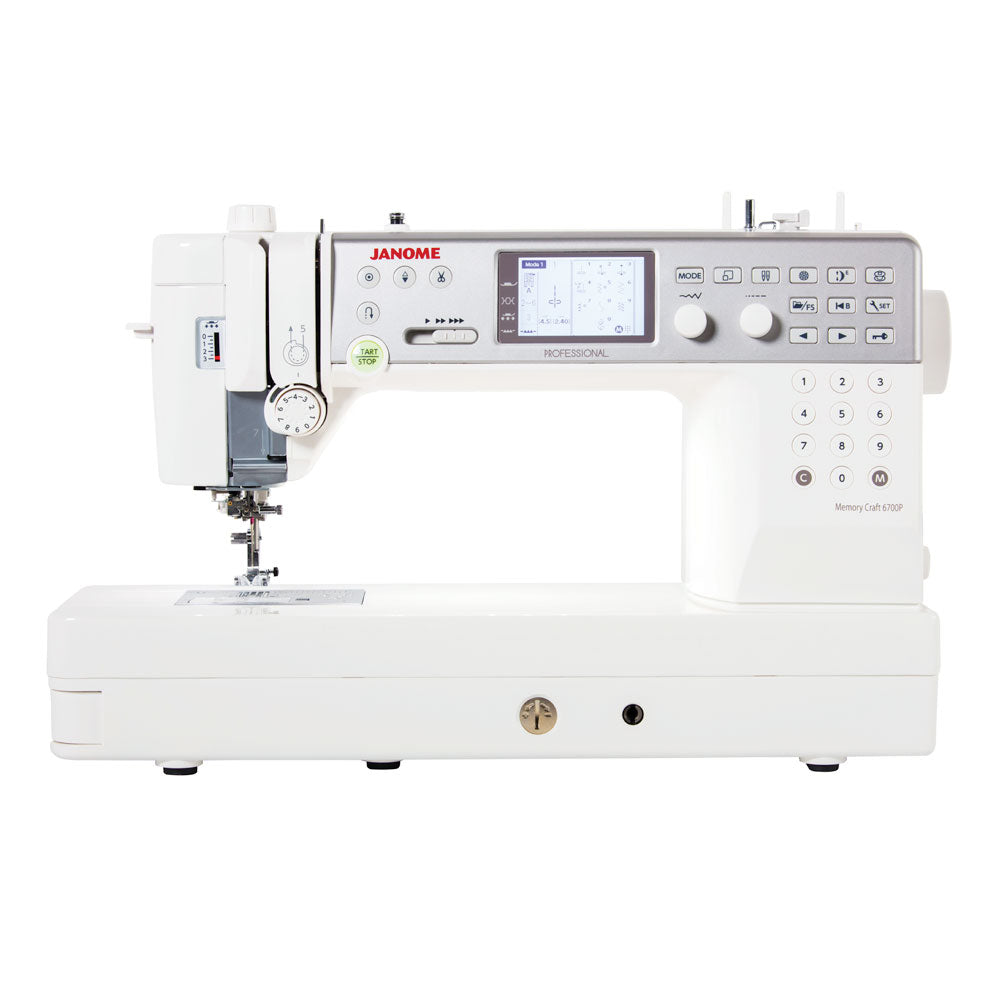 The Memory Craft 6700P Professional is the first domestic flat-bed sewing machine with a one-step needle plate conversion. It is the fastest domestic machine in its class with a maximum sewing speed of 1,200 stitches per minute. The 255mm (10”) of flat seamless work area is a pleasure to work on, and once the large extension table is attached, the work space is significantly increased. Lighting is no issue, white LED’s are located in 3 areas which illuminates the work space allowing you to sew at your leisure, day or night. An LCD screen along with the large chart reference chart make it so easy to navigate through the 200 built-in stitches, including 9 one-step buttonholes and 2 alpha numeric fonts including 9mm lettering and numbers. You can customise each stitch including buttonholes plus save as a favourite stitch. Plus, this model has customisation of the direct stitch screen, you can replace 7 of the original stitches and replace them with 7 of your favourite or most used stitches, this is a great time saving feature. Quilters and designers will appreciate the AcuFeed™ Flex Layered Fabric Feeding System, and the manual controlled foot pressure which can be adjusted in very small or large increments, to perfecting stitch your chosen fabric.