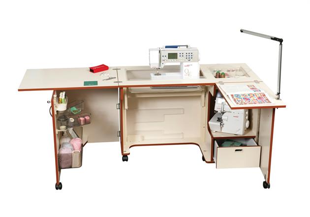 - Unique three position lifter for your sewing machine - stored, flatbed sewing and free-arm sewing