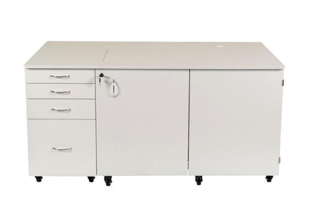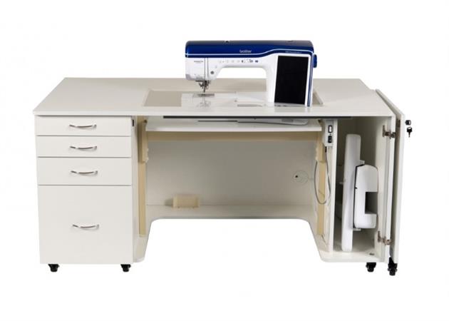 - Cabinet includes an electric lifter. It can be pre-set in 3 different positions to help you sew at multiple heights or for different machine uses.